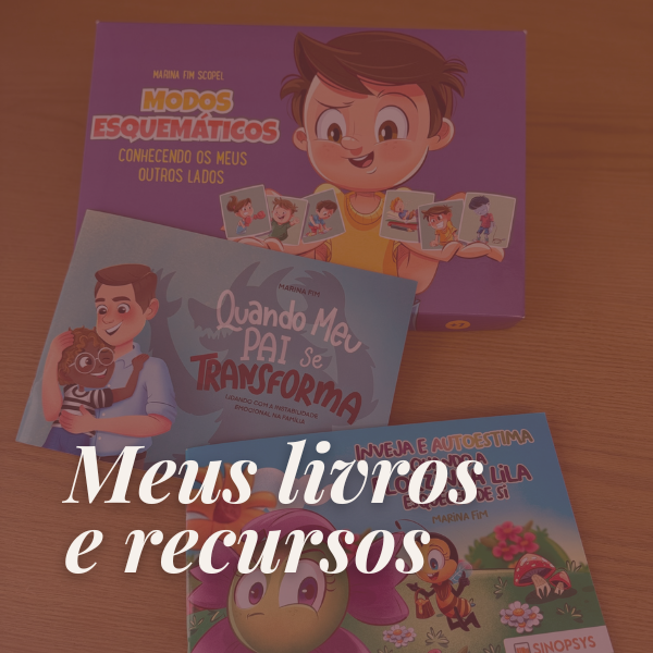 Me chamo Marina Fim Scopel, sou psicóloga (UCS), Terapeuta do Esquema (INSERE), Especialista em Neurociência, Educação e Desenvolvimento Infantil (PUCRS), Esp. em Psicologia Perinatal e da Parentalidade (Instituto MaterOnline) e com formação em andamento em Psicoterapia Baseada em Evidências (Instituto PBE).